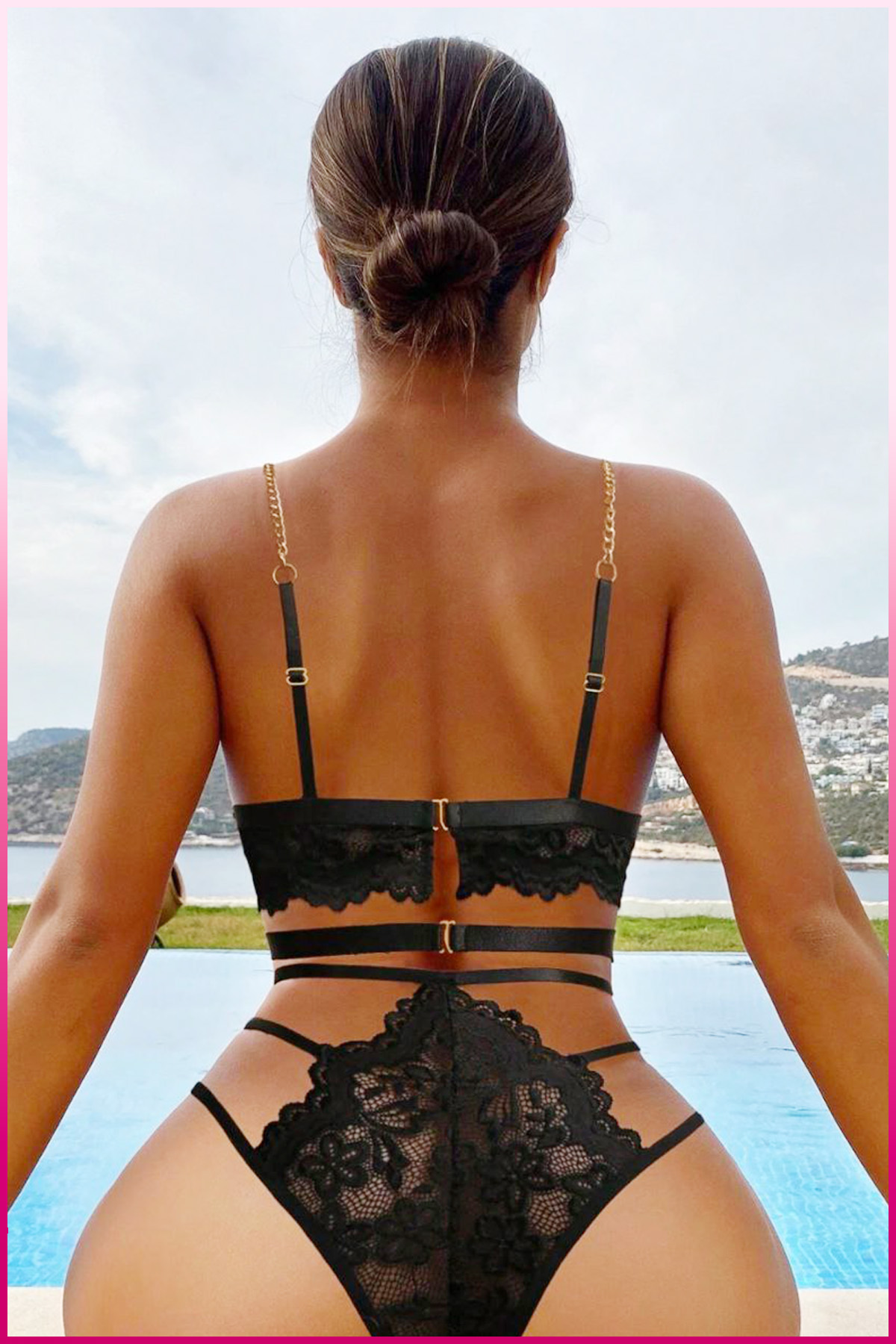 Purple-Daisy Sexy Lingerie set 3-delige set Lingerie Setje – Verleidelijke BH met Jarretels & Hoge Taille String – Sexy Bruidslingerie – Chique – Erotisc